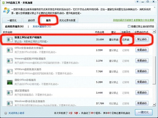 关于打开锐捷认证客户端一直提示重启的解决方法•锐捷不断要求重启 win7系统下,打开锐捷认证客户端时总是提示“重启计算机后才能使用锐捷认证客户端”如下图所示: 重启电脑之后,打开锐捷时依然出现这个对话框。多次重启后均出现此提示。 出现此故障的原因是Windows服务里面的“Supplicant Service”未正常启动。 解决方法:右键打开“我的电脑”—— >“管理” “管理”——>“服务和应用程序”——>“服务”, 找到“Supplicant Service”服务(如果找不到该服务,请将锐捷认证客户端卸载,重新安装) 然后在“Supplicant Service”服务上点击 右键—->“启动” 启动该服务之后,服务状态应为“已启动”如图所示: 选中该服务右键,属性。将此服务的启动类型设为“自动”下次开机则无需手动启动该服务。 该服务启动后,再次打开锐捷认证客户端,不再出现“重启计算机后才能使用锐捷认证客户端”提示。 PS:补充“如果电脑里安装了360安全卫士,并在开机服务中禁止了锐捷客户端的服务,同样在重启之后也会恢复到问题的初始状态”————>上图: 第一步: 找着360安全卫士打开————>高级工具————>开机加速(向下接着看 | ) 可能是卸载不干净的缘故。你要自己手动删除注册表文件,这样才能重新安装。方法:按WIN+R键启动运行,输入REGEDIT,进入注册表,找到名称如下的东西: HKEY_LOCAL_MACHINE\SOFTWARE\Microsoft\Windows\CurrentVersion\Uninstall\{FDB88DAF-8DA4-4226-855B-1D816F37AE58},这一键值,手动把它删除,就可以重新安装锐捷了。 |