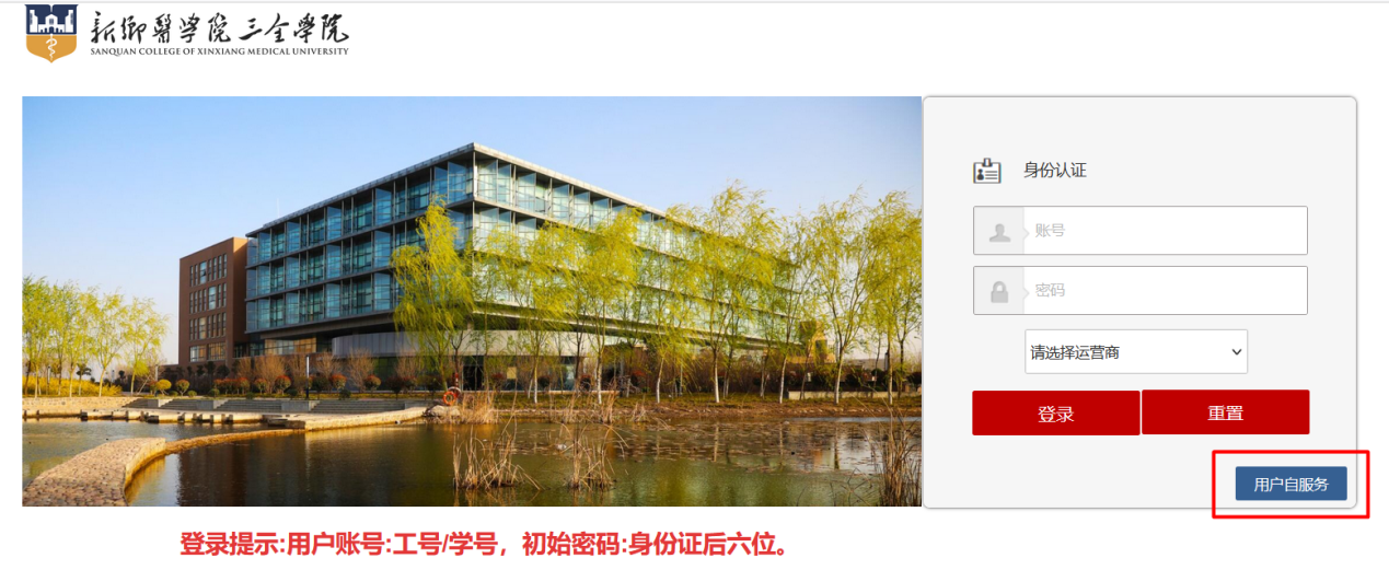 用户自助服务里面(http://10.10.12.5:8080/Self),可以根据原密码修改自己新密码,如忘记原密码则需到网络服务中心处理。