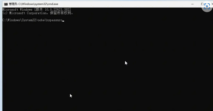 这时候把网线先拔了,按下键盘上的Shift + F10 (笔记本可能是Shift + FN + F10)调出系统的cmd功能,在命令中输入 oobe\bypassnro 如下图所示。