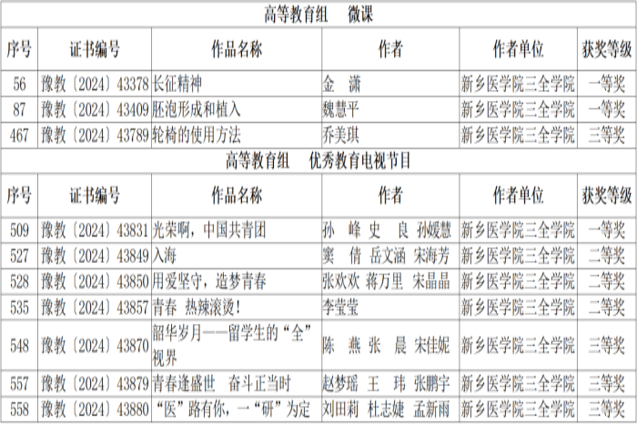 近日,从省教育厅获悉,在全省第二十八届教育教学信息化交流活动中,我校《长征精神》、《胚泡形成和植入》、《光荣啊,中国共青团》3件作品荣获一等奖。《入海》、《用爱坚守,造梦青春》、《青春 热辣滚烫!》3件作品荣获二等奖。《轮椅的使用方法》、《韶华岁月——留学生的“全”视界》、《青春逢盛世奋斗正当时》、《“医”路有你,一“研”为定》4件作品荣获三等奖。其中一等奖占比创近五年新高。自4月底省厅活动通知发布以来,我校开展新乡医学院三全学院第十五届教育教学信息化大赛共收集相关作品33件,经评审、择优20件作品推荐至河南省第二十八届教育教学信息化交流活动,最终取得了优异的成绩。近年来,我校十分重视教育信息化教学工作,不断升级改善软硬件教学环境、优化教学资源建设保障。以信息技术井喷式发展为背景聚焦信息化培养,以教育教学信息化交流活动为契机,坚持理论与实践并重、技术使用与教学设计相融的理念。旨在通过比赛提供平台,增强认识,锤炼技能,互通有无,进一步提升广大教师的教育教学信息化水平,积极推动学校信息技术与教育教学的融合创新。 我校将继续贯彻落实《河南省“十四五”教育信息化发展规划》,通过多措并举,使广大教师在了解新观念的基础上,为教师适应大数据、人工智能等新技术变革提供引导和支持,提升教师的教育信息化素养,增强信息技术能力,为加快推进教育现代化、建设教育强省、办好人民满意的教育不懈努力。